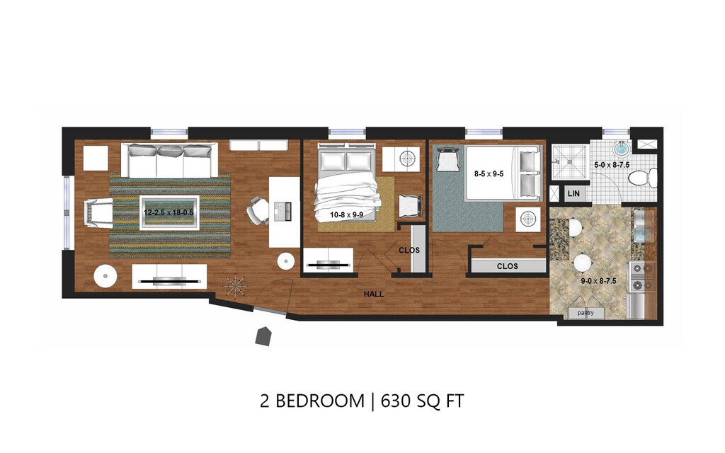 Apartment Model: Garden Level 2 Bedroom2 Bedroom, 1 Bath, 630 sq ftAvailable March 6, 2026![]()