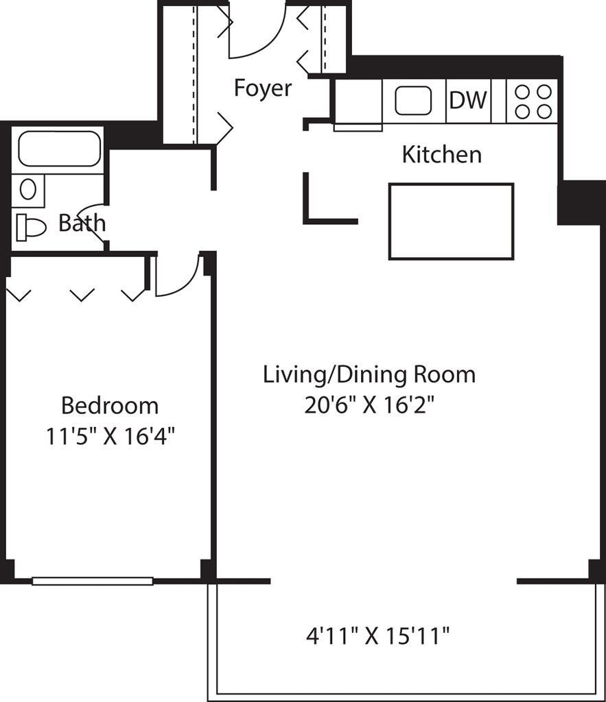 Apartment Model: J D 10 EmersonFrom $3,2501 Bedroom, 1 Bath, 865 sq ftAvailable Now![]()