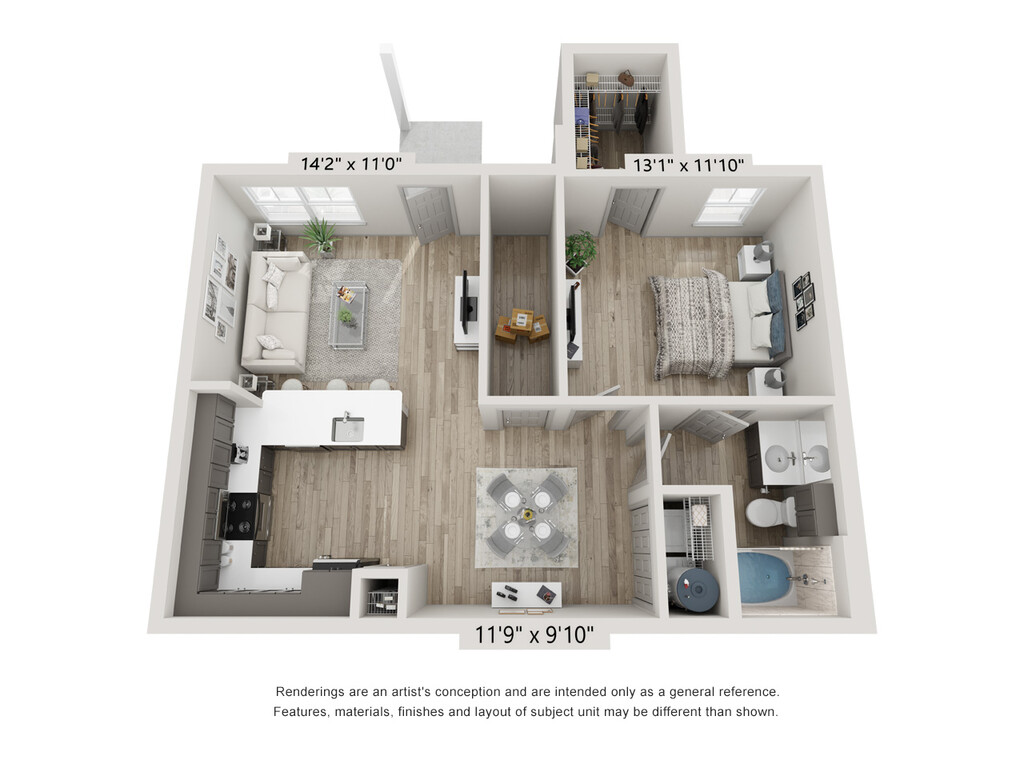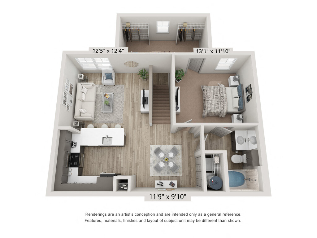 Apartment Model: A1aFrom $9681 Bedroom, 1 Bath, 775 sq ftAvailable NowFloor plans are artist's rendering. All dimensions are approximate. Actual product and specifications may vary in dimension or detail. Not all features are available in every rental home. Prices and availability are subject to change. Base rent is based on monthly frequency. Additional fees may apply, such as but not limited to package delivery, trash, water, amenities, etc. Deposits vary. Please see a representative for details.