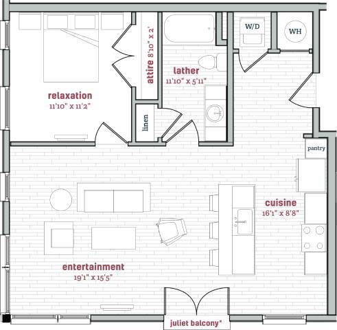 Studio, 1 Bath, 542 sq ftAvailable NowModel Gallery