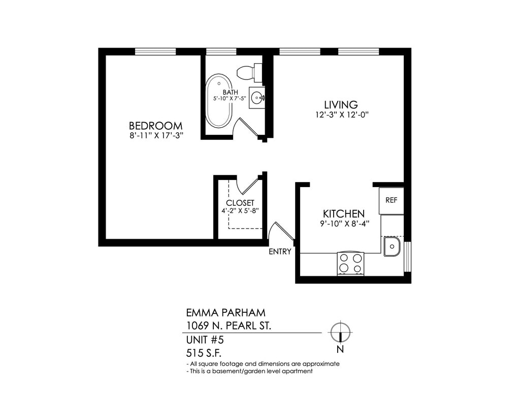 1 Bedroom, 1 Bath - Floorplan 5 Apartment Unit: 5Apartment Model: 1 Bedroom, 1 Bath1 Bedroom, 1 Bath, 515 sq ftAvailable Now![]()