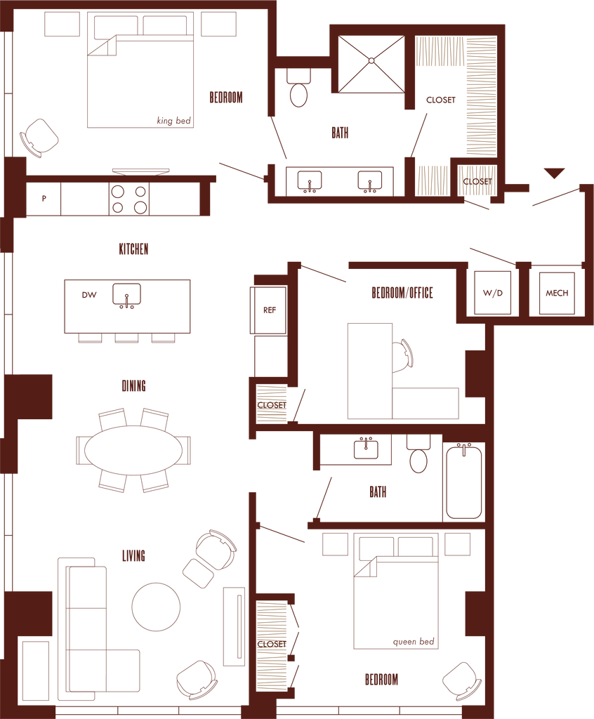 1 Bed, 1 Bath, 581 sq ftAvailable NowModel Gallery