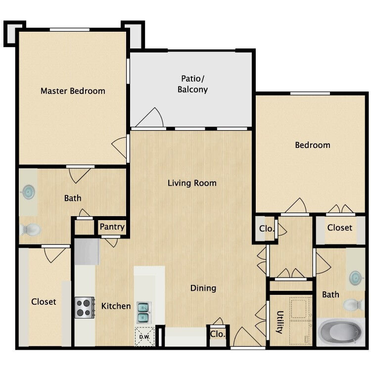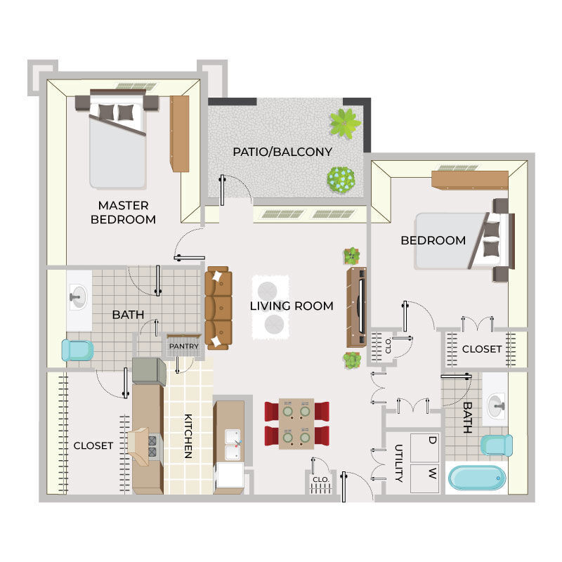 2 Beds, 2 Baths, 965 sq ftAvailable NowModel Gallery