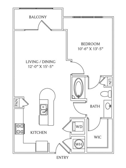 Apartment Model: S1AN2From $1,532Studio, 1 Bath, 619 sq ftAvailable April 8, 2026Floor plans are artist's rendering. All dimensions are approximate. Actual product and specifications may vary in dimension or detail. Not all features are available in every rental home. Please see a representative for details.