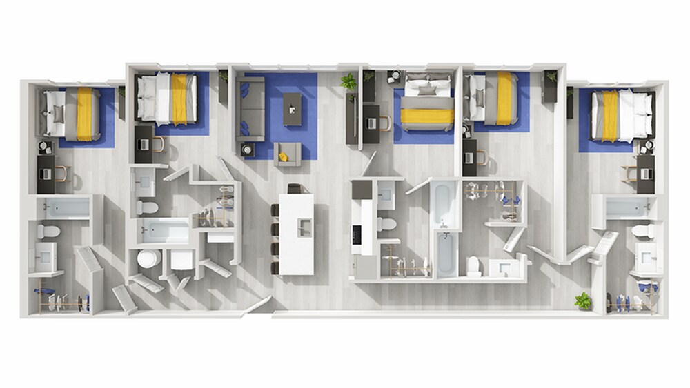 D1 - Floorplan 1 Apartment Unit: Amenity Floor - Preferred BedroomApartment Model: D1$1,3254 Bedroom, 4 Bath, 1410 sq ftAvailable August 14, 20265 Bedrooms