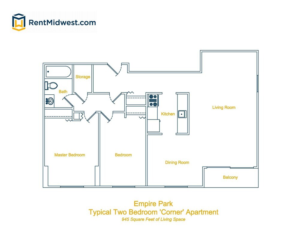2 Beds, 1 Bath, 945 sq ftLargest 2 BedroomThis is the largest 2 Bedroom at this PropertyModel Gallery