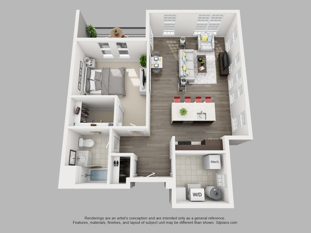 1 Bedroom, 1 Bathroom 1H - Floorplan 3 1 Bedroom, 1 Bathroom 1D