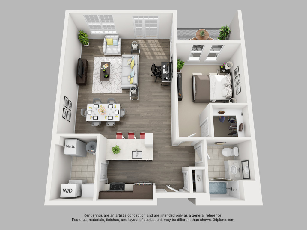 1 Bed, 1 Bath, 885 sq ftModel Gallery