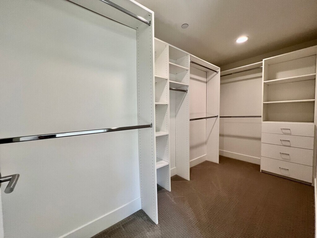 - Spacious Walk-in Closets with Custom Shelving and Drawers