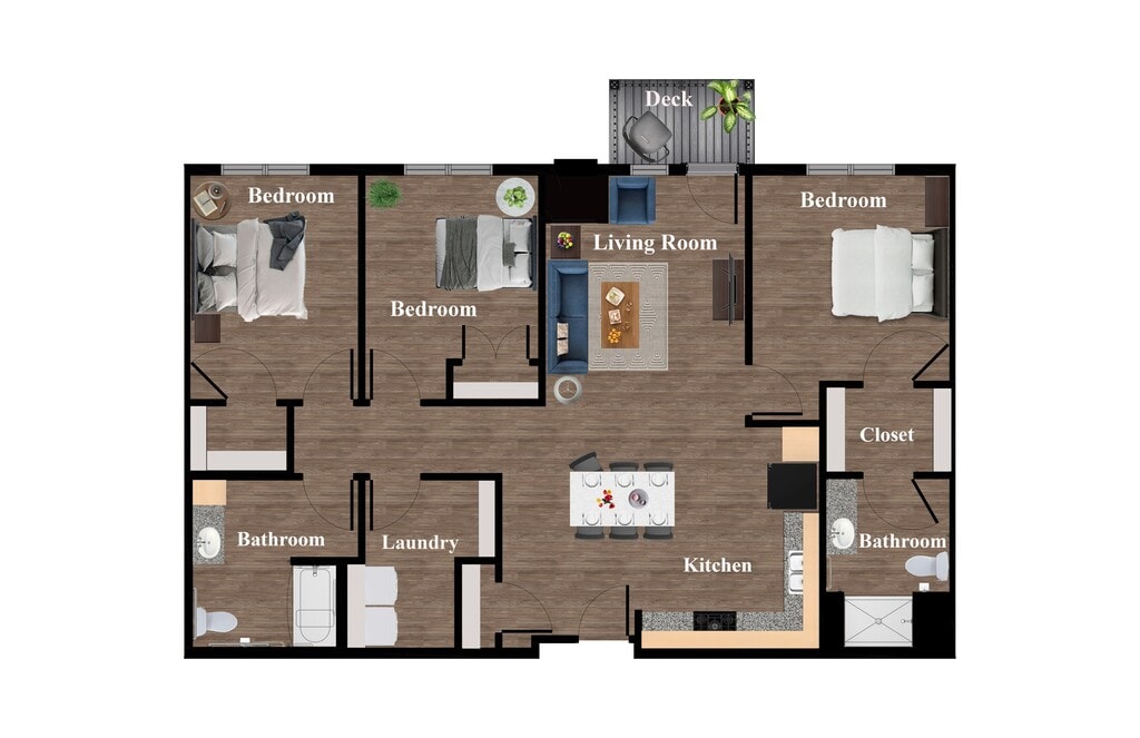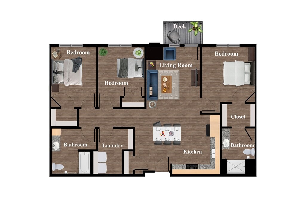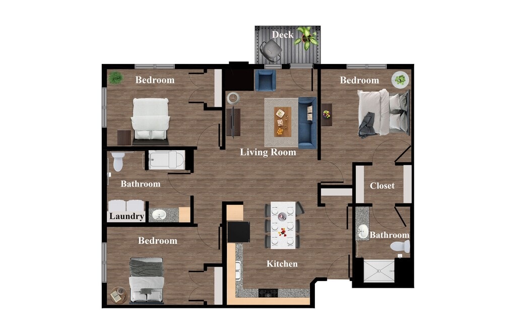 Apartment Model: Three Bedroom3 Bedroom, 2 Bath, 1092-1126 sq ftAvailable Now![]()