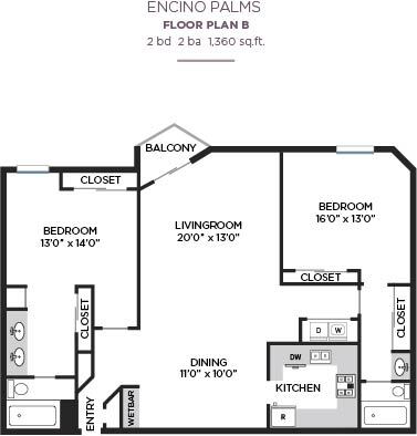 2 Beds, 2 Baths, 1360 sq ftAvailable NowLargest 2 BedroomThis is the largest 2 Bedroom at this PropertyModel Gallery