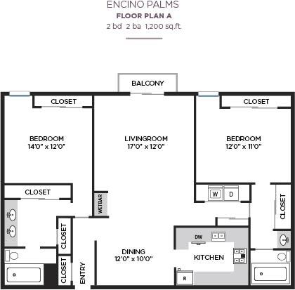 Apartment Model: A Floor Plan$2,8252 Bedroom, 2 Bath, 1200 sq ftAvailable NowA Floor Plan - Floorplan 1 B Floor Plan