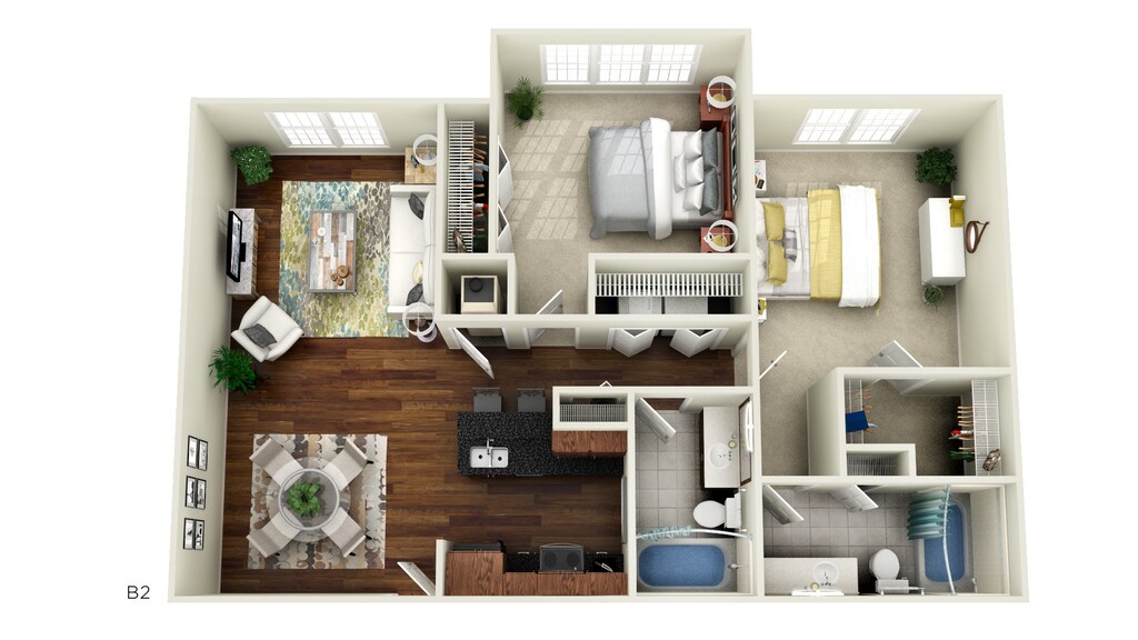 Apartment Model: B2From $1,1942 Bedroom, 2 Bath, 1047 sq ftAvailable Now![]()