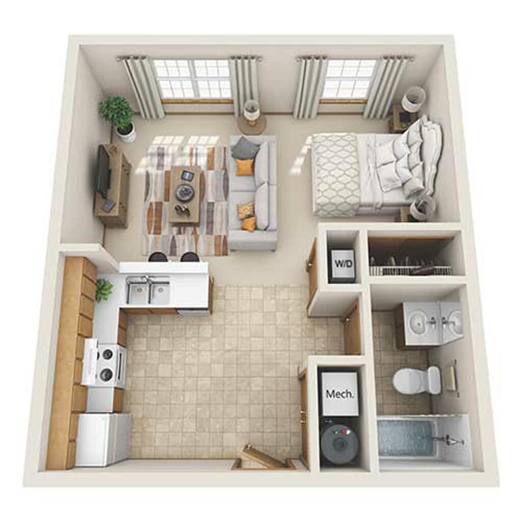 Studio, 1 Bath, 514 sq ftModel Gallery