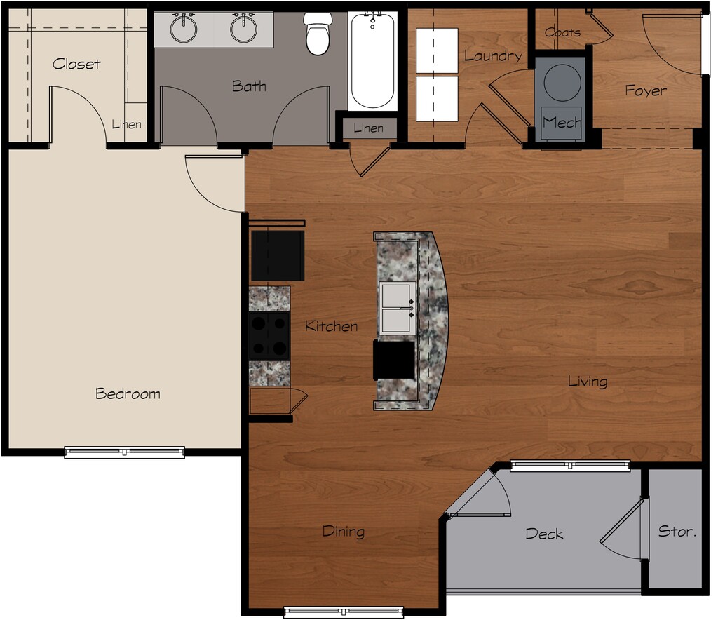 1 Bed, 1 Bath, 726 sq ftAvailable NowModel Gallery