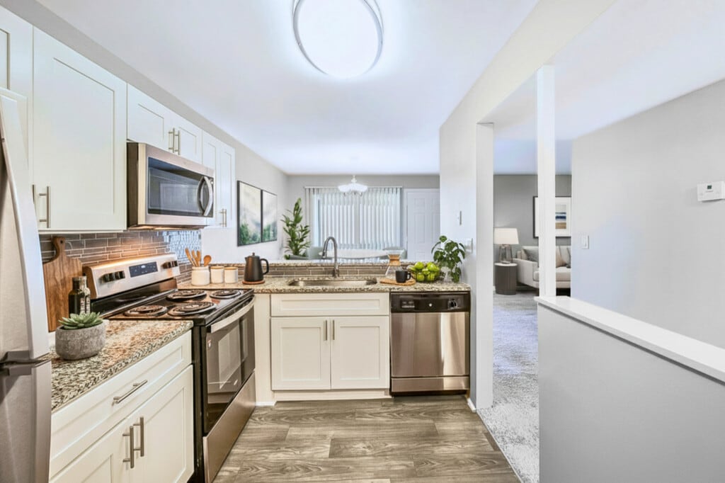 Welcome home to Enclave at North Point Apartments! Settle into one of our comfortable studio, one, two, and three-bedroom apartments. If you are searching for a relaxing and inviting space, you’re in luck. Every apartment offers sparkling subway tile backsplash, solid granite stone countertops, and stainless steel appliances, and that is just the beginning. Be on the lookout! We are under NEW MANAGEMENT and adding a number of BRAND NEW AMENITIES, including a new Laundry Center, new Grilling Areas, an upgraded Pet Park, and more! Outside of your apartment, enjoy our fantastic community amenities, including a business center, swimming pool, playground and more! For your convenience, we also offer an on-site maintenance and management team, who are always willing to assist, as well as on-site laundry facilities. Call our friendly leasing staff today to schedule a personal tour of your new home at Enclave at North Point Apartments!