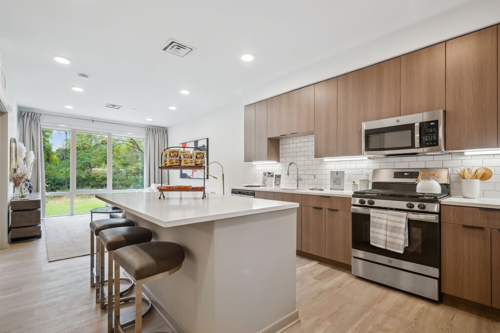 The Enclave at Raritan offers luxurious one- and two-bedroom apartments, blending modern comfort and upscale style in the heart of Flemington, NJ. Residents enjoy an array of high-end community amenities, including a resort-style swimming pool, a spacious outdoor courtyard with grilling stations, a clubroom featuring a private dining room for entertaining, and a fully equipped fitness studio. For those who work remotely, there are private workstation pods and a cyber lounge. The apartments are designed with thoughtful details like stainless steel appliances, quartz countertops, full-size washers and dryers, and walk-in closets. Select units offer additional perks such as kitchen islands and floor-to-ceiling windows. The community is ideally located near Flemington's hotspots, including a variety of shopping, dining, and entertainment options, such as the Union Hotel and Flemington Ice Arena, perfect for enjoying a vibrant local lifestyle