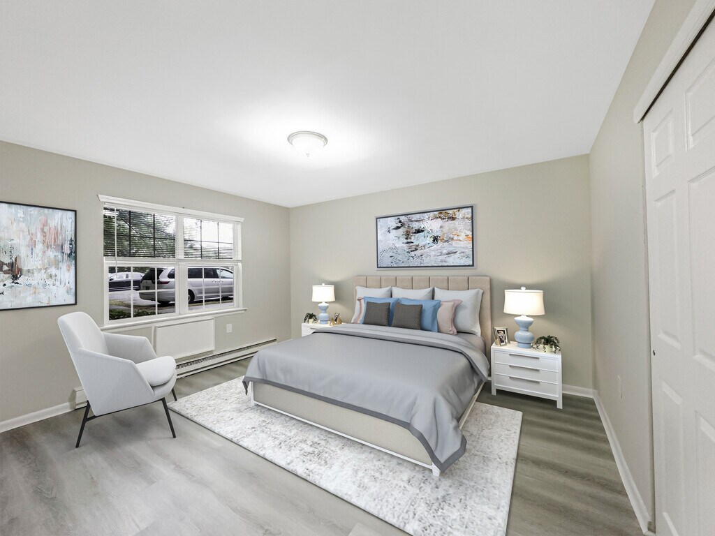 beautiful spacious 820 sq ft garden style apartment excellent layout with patio Washer/dryer in each unit ample off street parking plenty of closet space great neighborhood close to tons of shopping and garden state highway very quite and peaceful complex