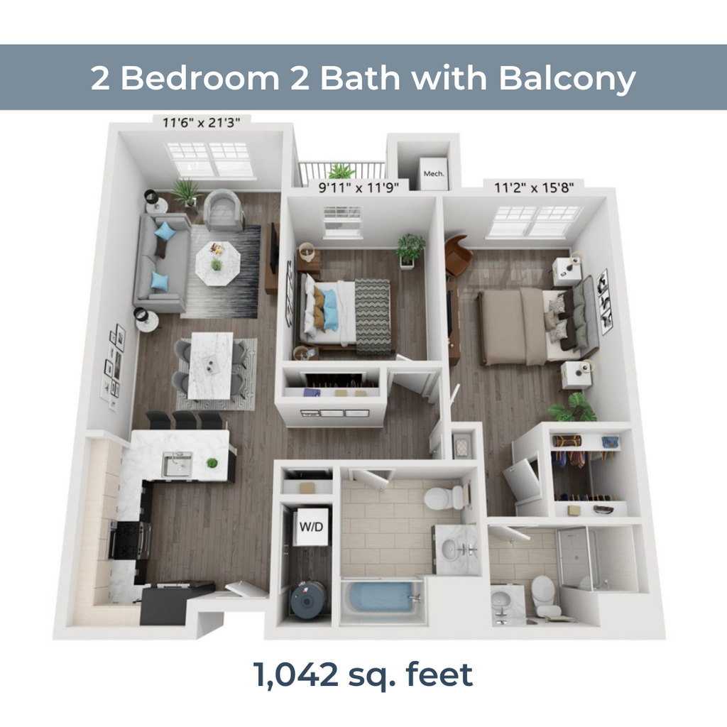 2 Beds, 2 Baths, 1159 sq ftAvailable NowCheapest 2 BedroomThis is the cheapest 2 Bedroom at this PropertyModel Gallery