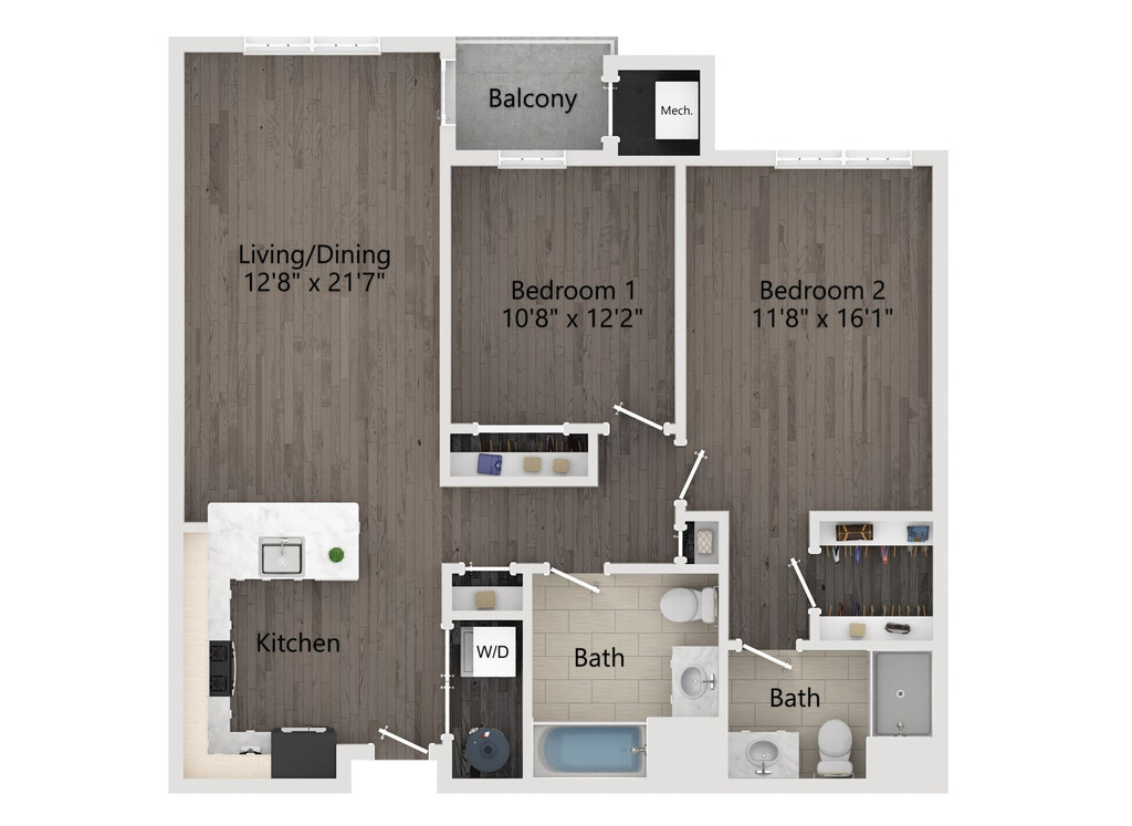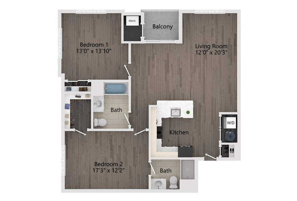 2 Beds, 2 Baths, 1284 sq ftAvailable NowLargest 2 BedroomThis is the largest 2 Bedroom at this PropertyModel Gallery