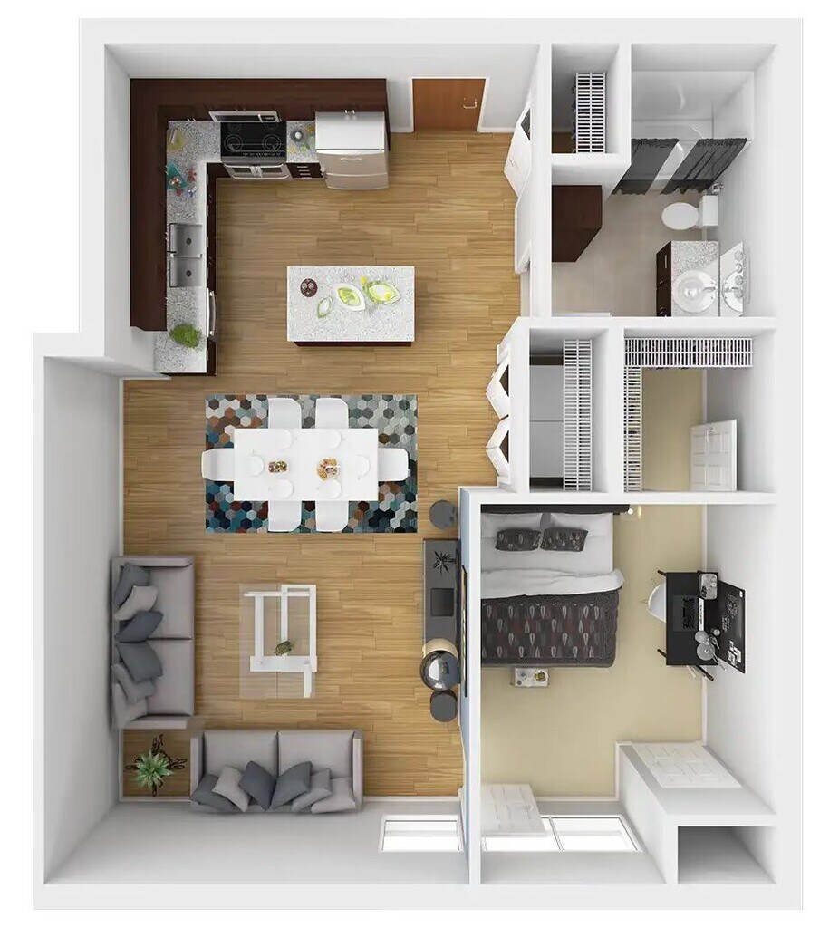 1 Bed, 1 Bath, 639 sq ftModel Gallery