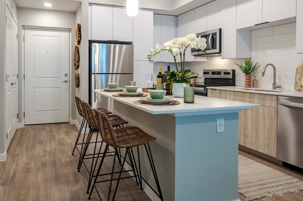 Studio to 3 Bedroom Apartments at Encore Echo currently range from $1,315 to $3,109