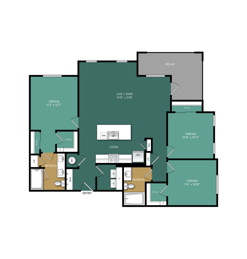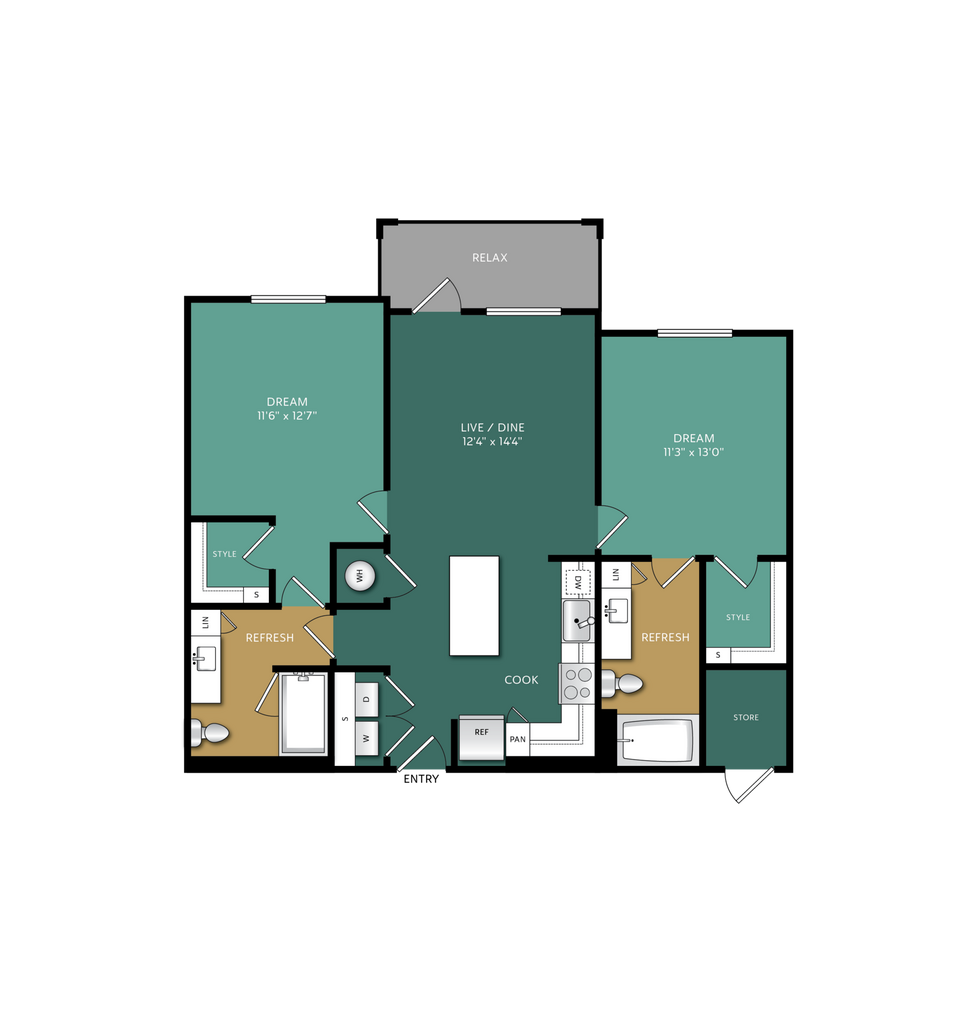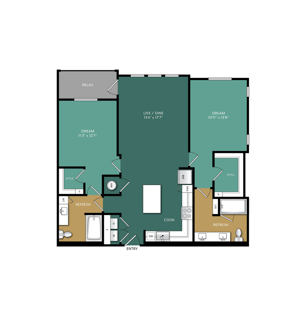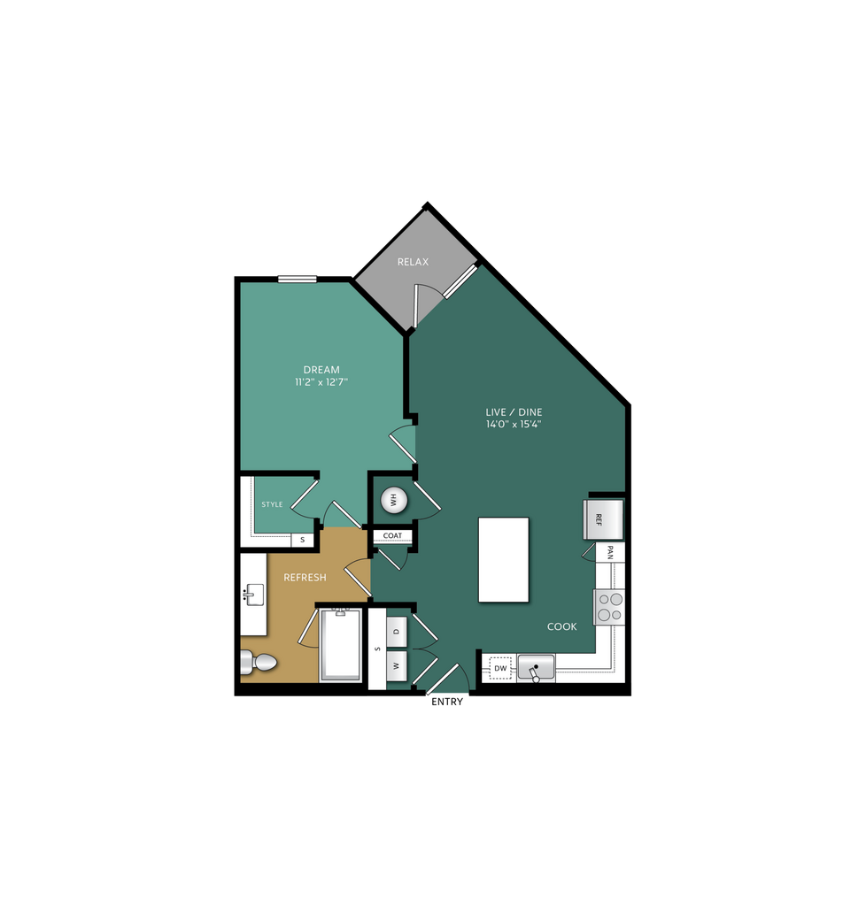 Studio, 1 Bath, 616 sq ftAvailable NowModel Gallery