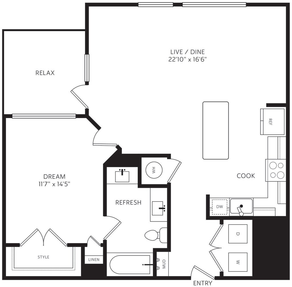1 Bed, 1 Bath, 633 sq ftAvailable NowModel Gallery