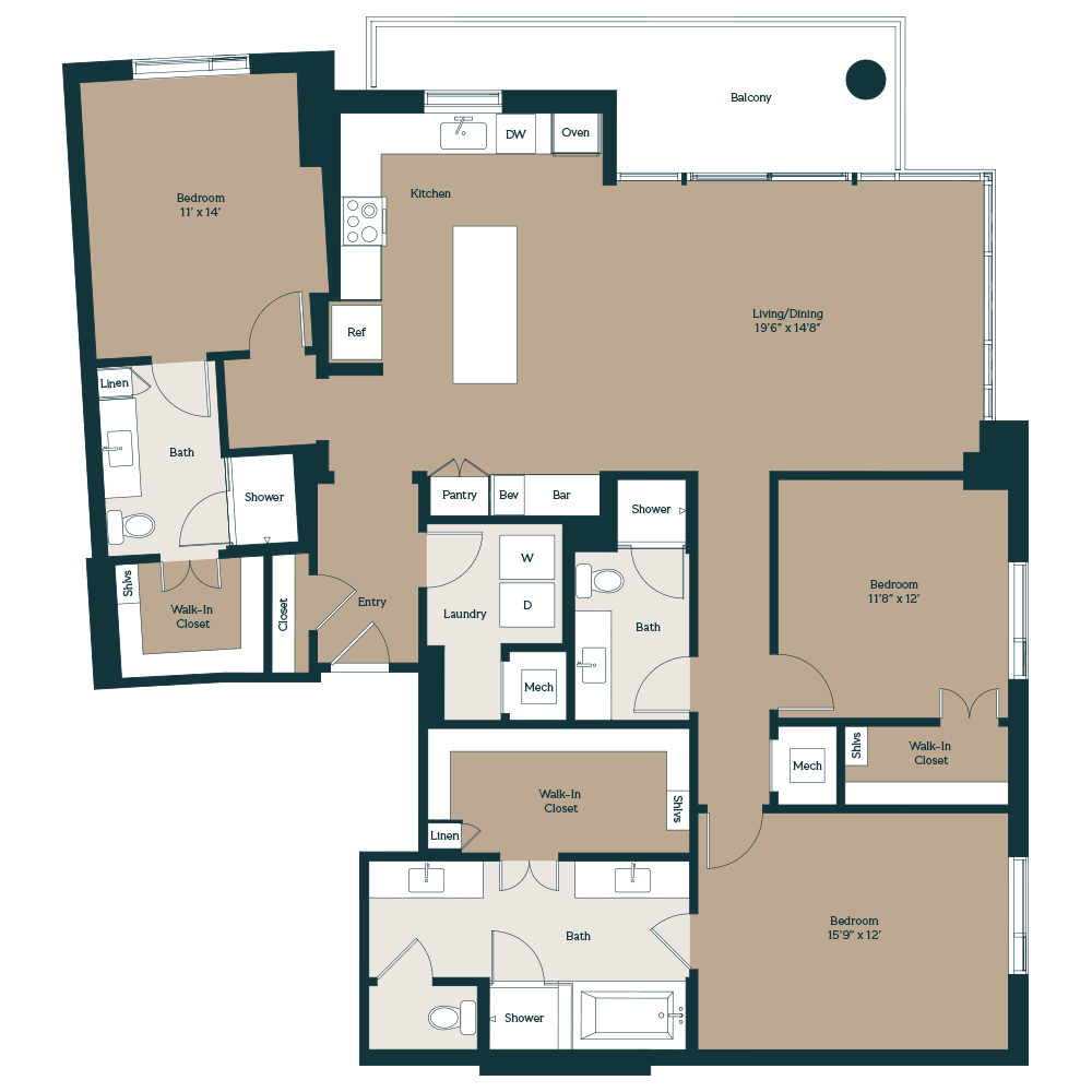 1 Bedroom to 3 Bedroom Apartments at Encore Lakeside currently range from $2,205 to $6,290