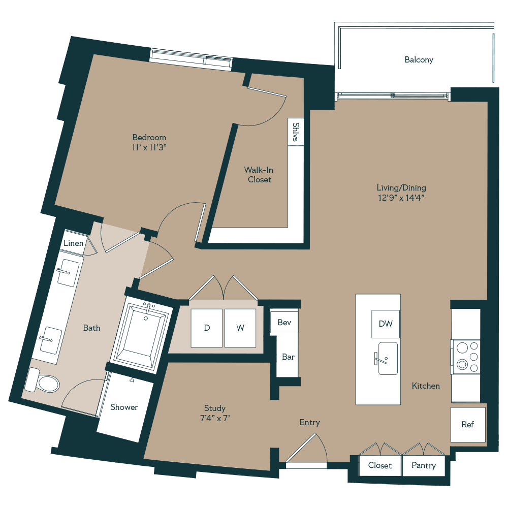 1 Bed, 1 Bath, 660 sq ftAvailable February 1, 2026Model Gallery