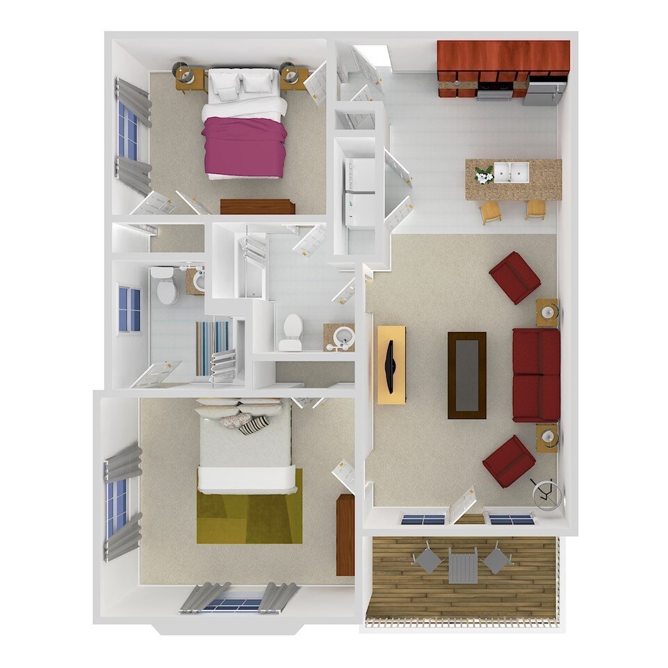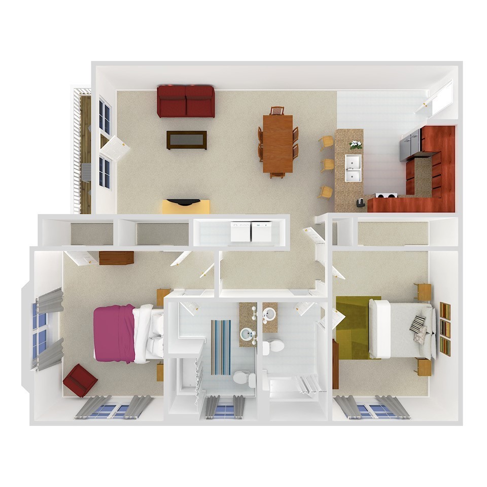 2 Beds, 2 Baths, 1220 sq ftAvailable NowLargest 2 BedroomThis is the largest 2 Bedroom at this PropertyModel Gallery