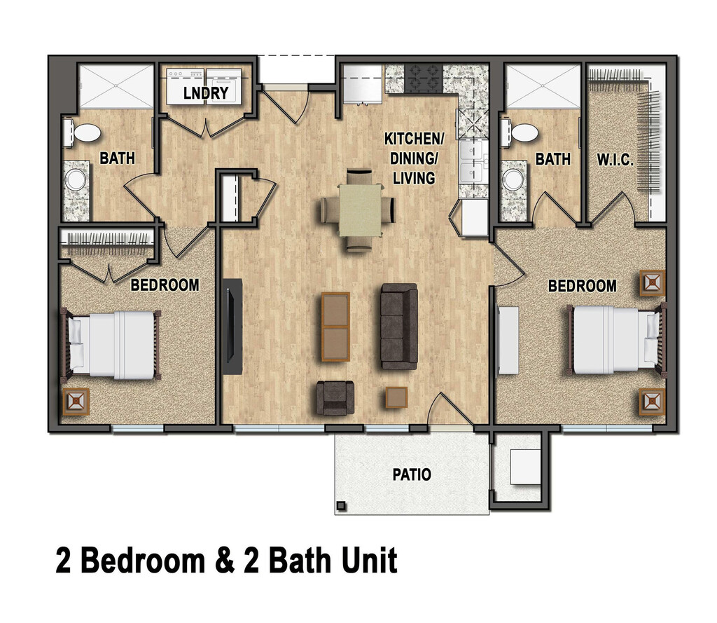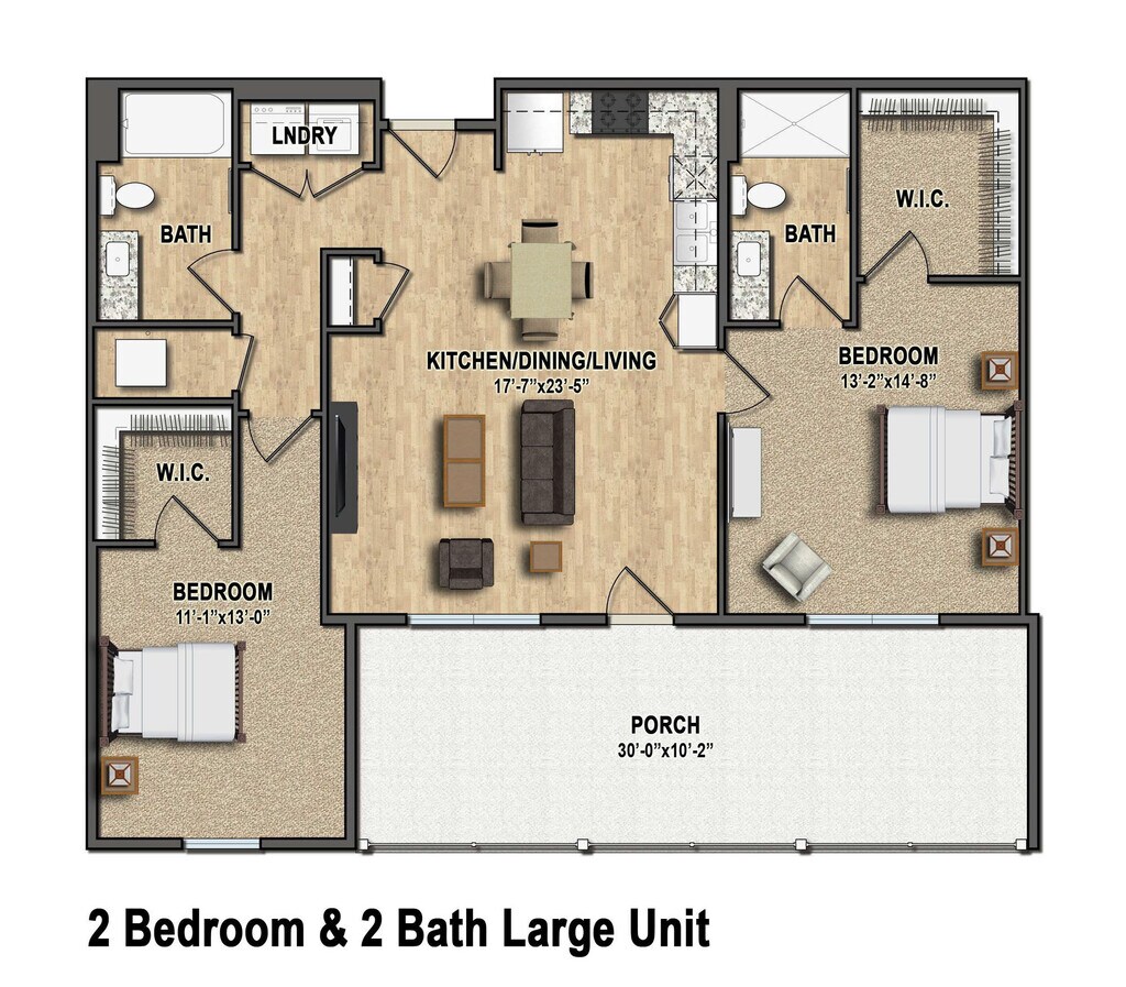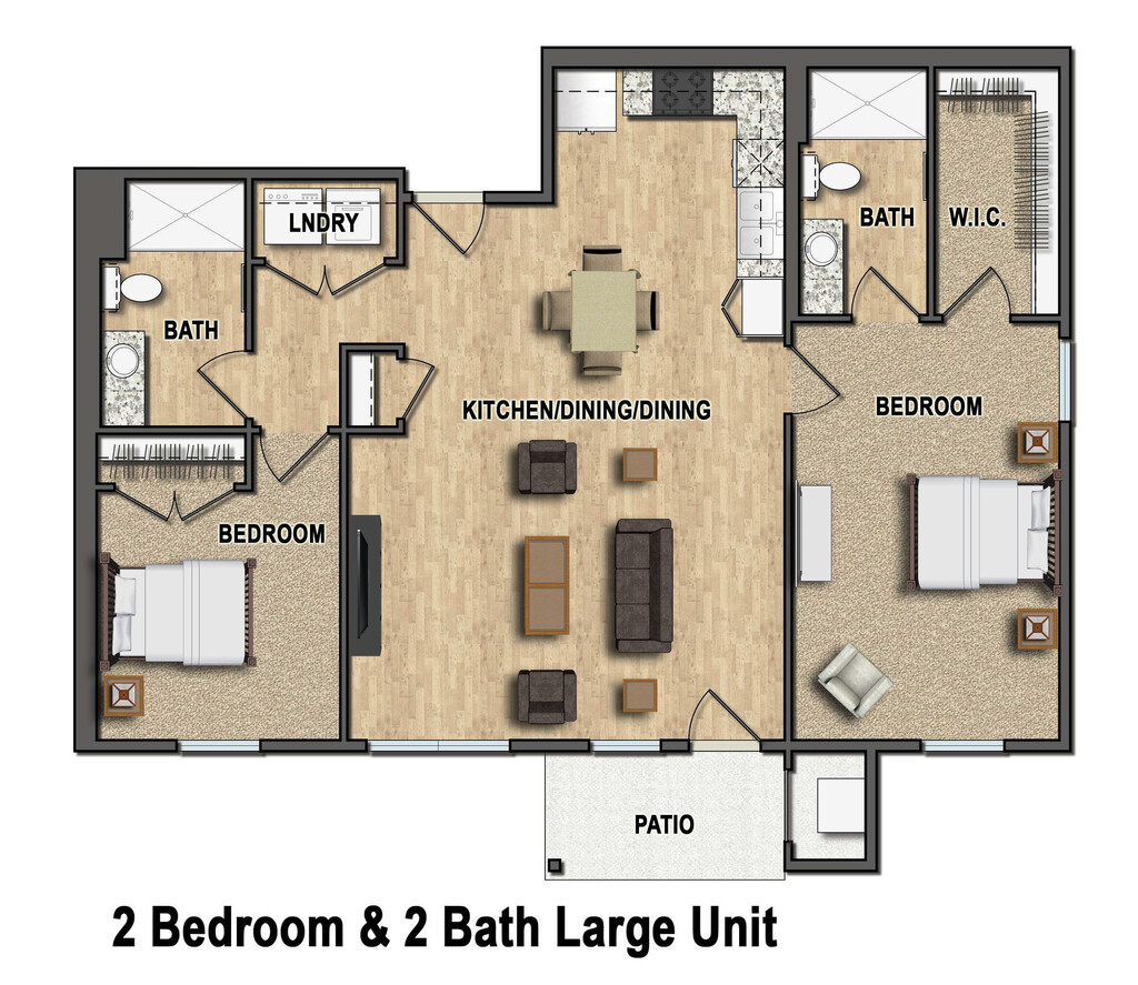 2 Beds, 2 Baths, 1313 sq ftLargest 2 BedroomThis is the largest 2 Bedroom at this PropertyModel Gallery