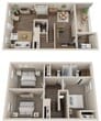 Apartment Model: 3BR 2.5BTH Townhome$1,4993 Bedroom, 2.5 Bath, 1345-1414 sq ftUnavailable3BR 2.5BTH Townhome - Floorplan 1