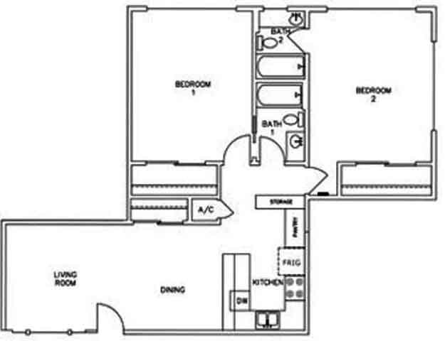 2 Bedroom 1.5 Bathroom - Floorplan 1 2 Bedroom 2 Bathroom
