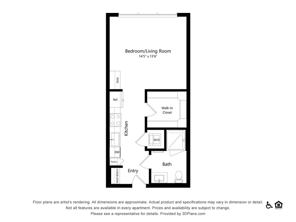 Apartment Model: S3HC$1,450Studio, 1 Bath, 579 sq ftAvailable NowFloor plans are artist's rendering. All dimensions are approximate. Actual product and specifications may vary in dimension or detail. Not all features are available in every rental home. Prices and availability are subject to change. Base rent is based on monthly frequency. Additional fees may apply, such as but not limited to package delivery, trash, water, amenities, etc. Deposits vary. Please see a representative for details.