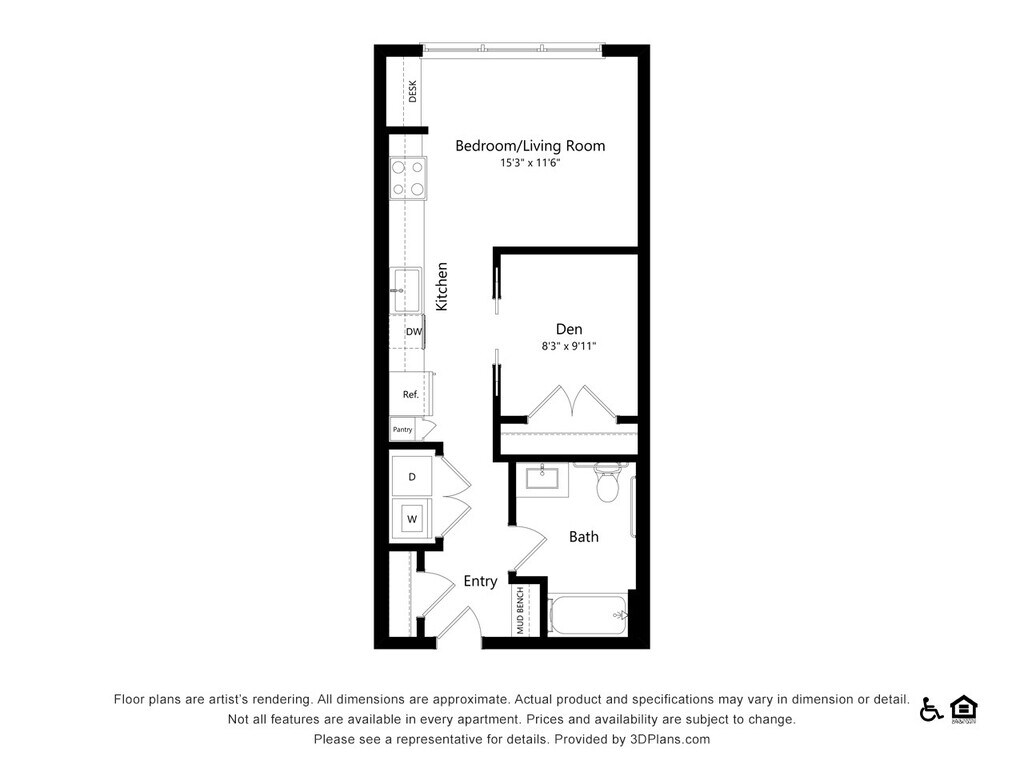 Studio, 1 Bath, 579 sq ftAvailable NowModel Gallery