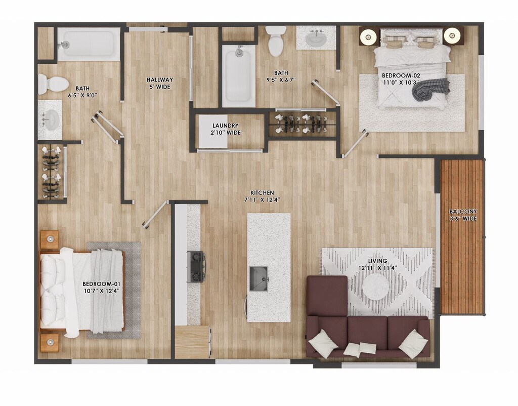 1 Bed, 1 Bath, 751 sq ftAvailable NowModel Gallery