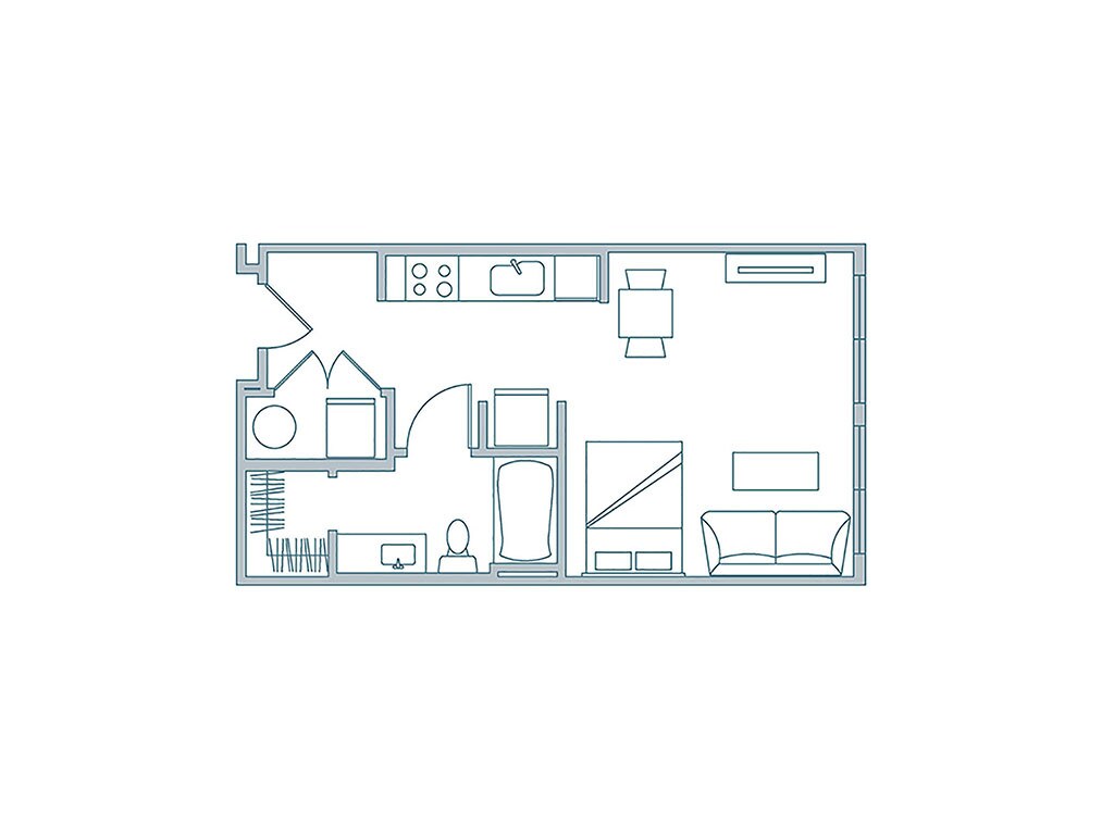 Apartment Model: Studio A$1,8321 Bedroom, 1 Bath, 467 sq ftAvailable Now![]()
