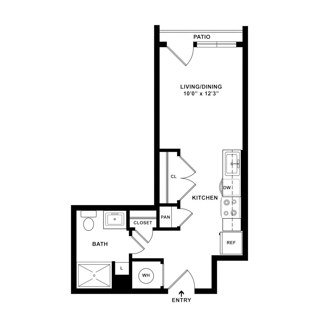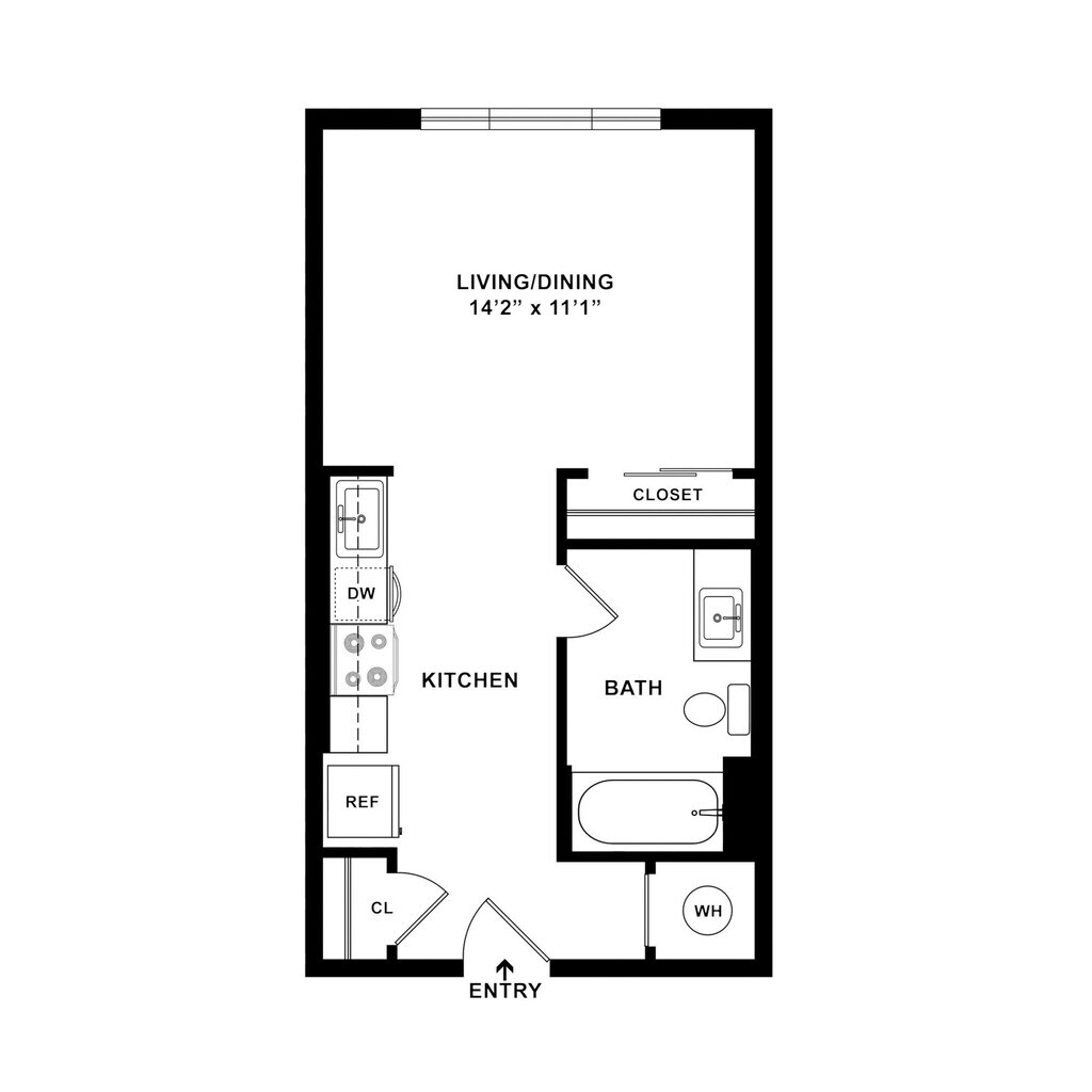 Studio, 1 Bath, 500 sq ftAvailable NowModel Gallery