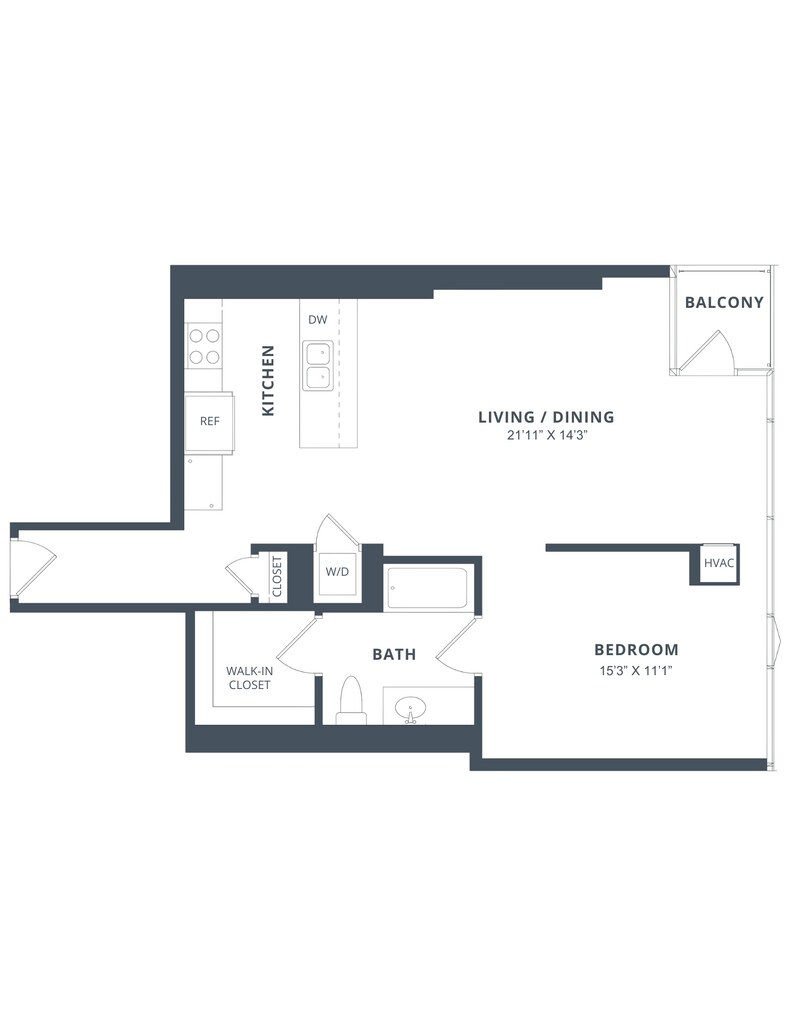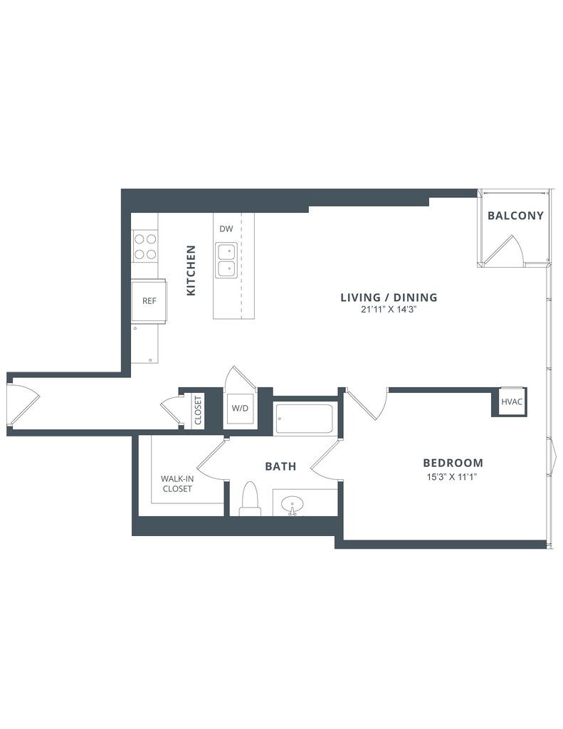 Studio, 1 Bath, 603 sq ftLargest StudioThis is the largest Studio at this PropertyModel Gallery
