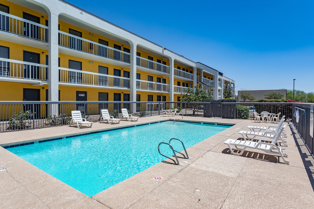 Stay at Siegel Suites Phoenix Apartments for a great Phoenix location. It’s the ideal apartment location for those wanting quick and convenient access. It is nearby shopping centers like Target, Best Buy, Walmart, and various dining options as well as local elementary schools. We are also conveniently located next to the I40 and I25 freeways. Siegel Suites Phoenix Apartments are a great place to stay in the beautiful state of Arizona. We are located adjacent to Interstate 10, with quick access to downtown. We are close to restaurants, shopping, and more. Nearby restaurants include Taco Bell, IHOP, Port of Subs, and Sonic Drive-In. Also, nearby stores include Smart and Final, Walgreens, and Dollar Tree. Our move-in-ready studio apartments are pet-friendly and fully furnished. Not sure how long you will need your low-cost apartment? We offer flexible stay living with various options to suit your needs. Rent your flexible stay apartment today with no long-term lease and your choice of low weekly or monthly payment options. Bad credit OK. Some of the great amenities we include are free utilities, free cable TV, and more. Also, we provide a sparkling pool, elevators, and flat-screen TVs in every unit. Get more details below. Then call us or email us to reserve your Phoenix, Arizona apartment at Siegel Suites Phoenix. Lastly, another great feature of Siegel Suites is our Siegel Rewards Program. The longer you stay, the less you pay!