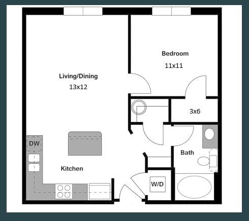 Apartment Model: One Bedroom A1From $1,0951 Bedroom, 1 Bath, 633 sq ftAvailable NowFloorplansPhotos![]()
