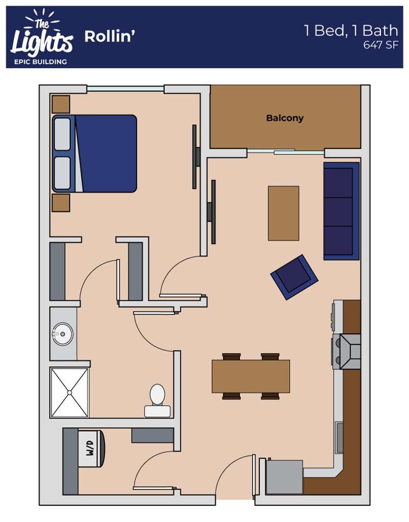 Apartment Model: Rollin' - PlazaFrom $1,4251 Bedroom, 1 Bath, 649 sq ftAvailable Now![]()