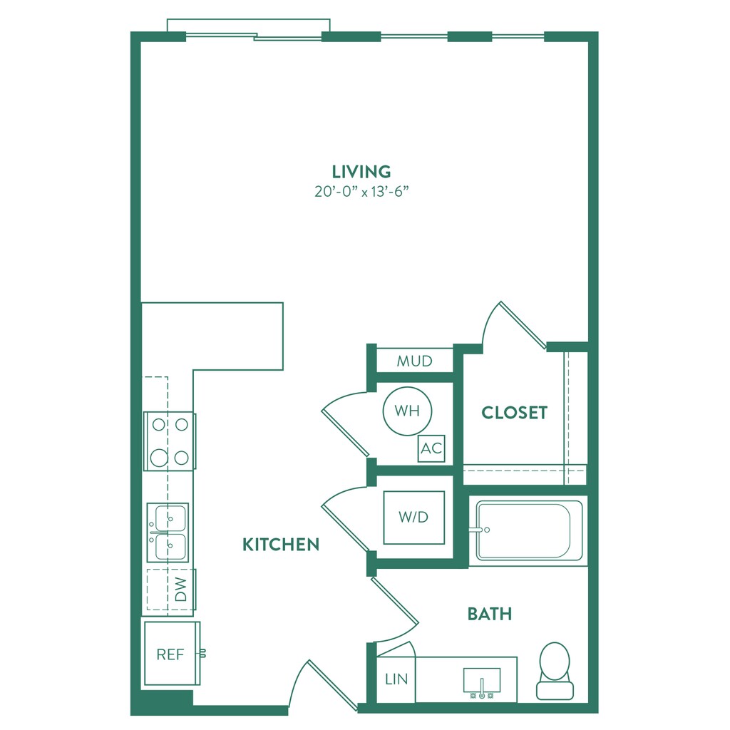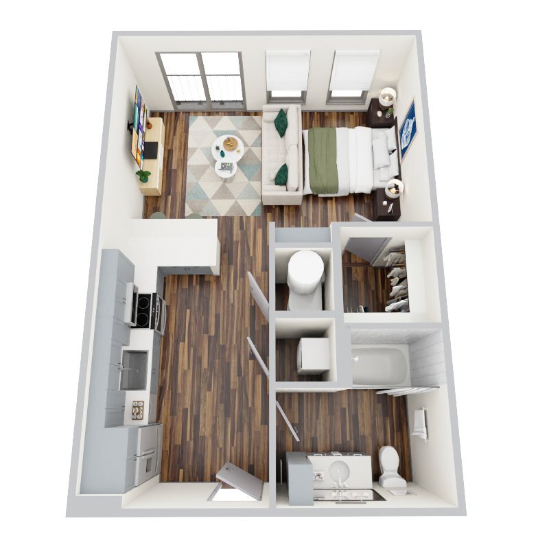 Studio, 1 Bath, 507 sq ftAvailable January 14, 2026Model Gallery