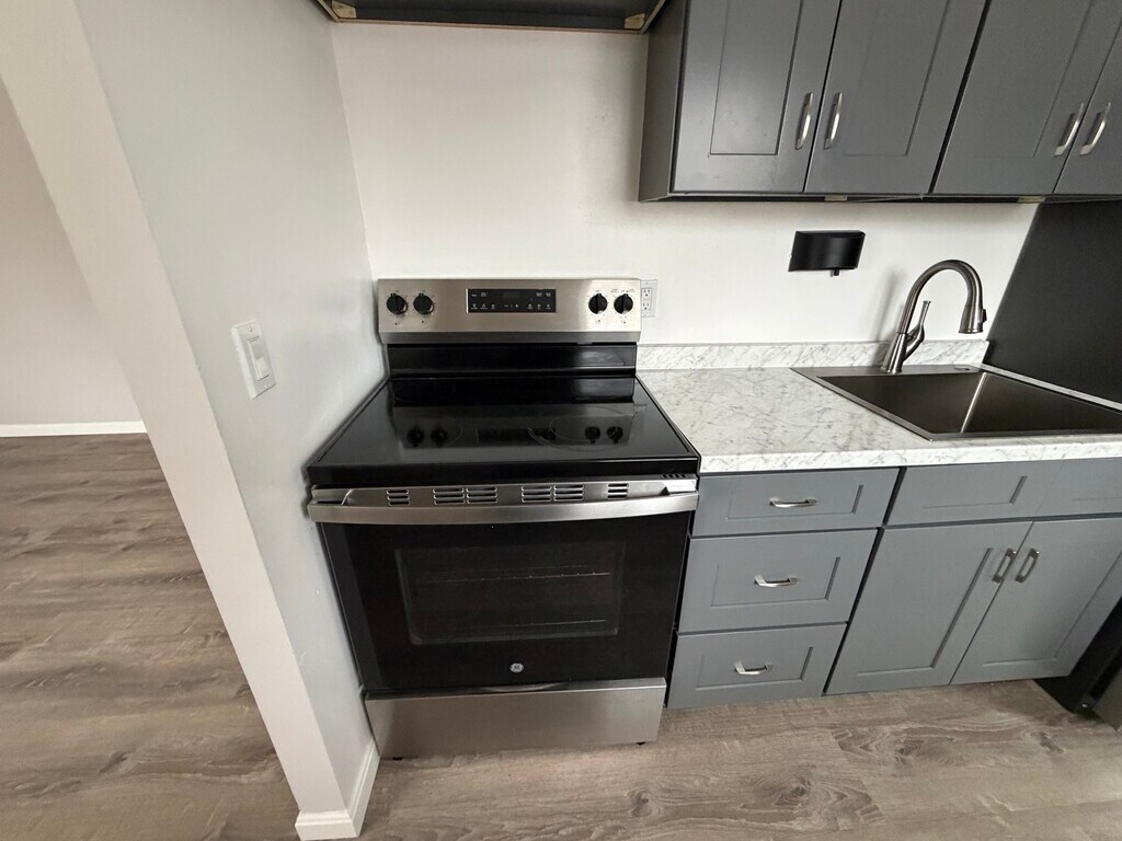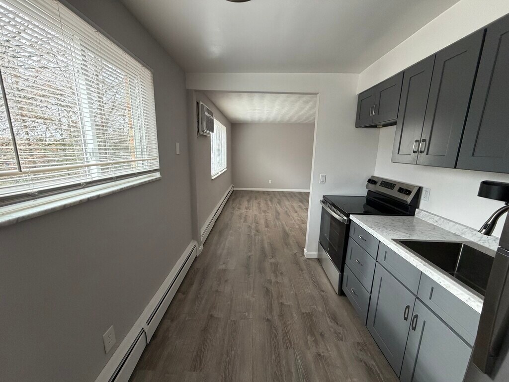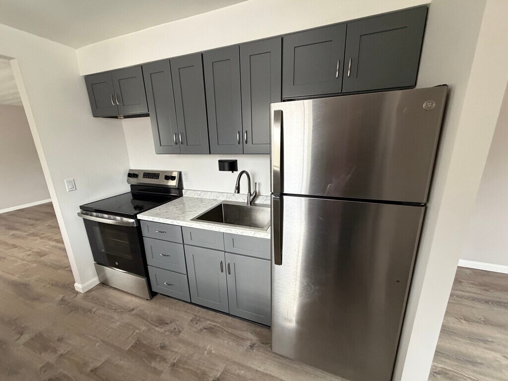 Recently renovated apartment. Luxury Vinyl flooring throughout. Newer Kitchen cabinets, countertops, sink, refrigerator & range. Newer Windows. Off street parking. On site laundry. Water & heat included.