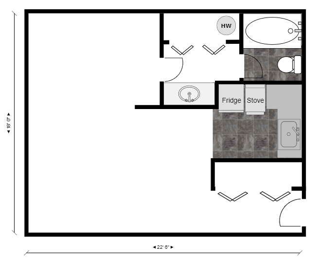 Efficiency Apartment - Floorplan 1 Efficiency Apartment Remodeled