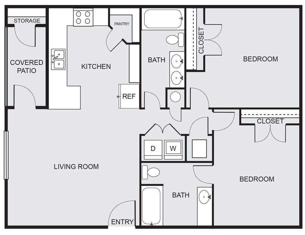 Apartment Model: Two Bedroom B12 Bedroom, 2 Bath, 1018 sq ftAvailable Now![]()