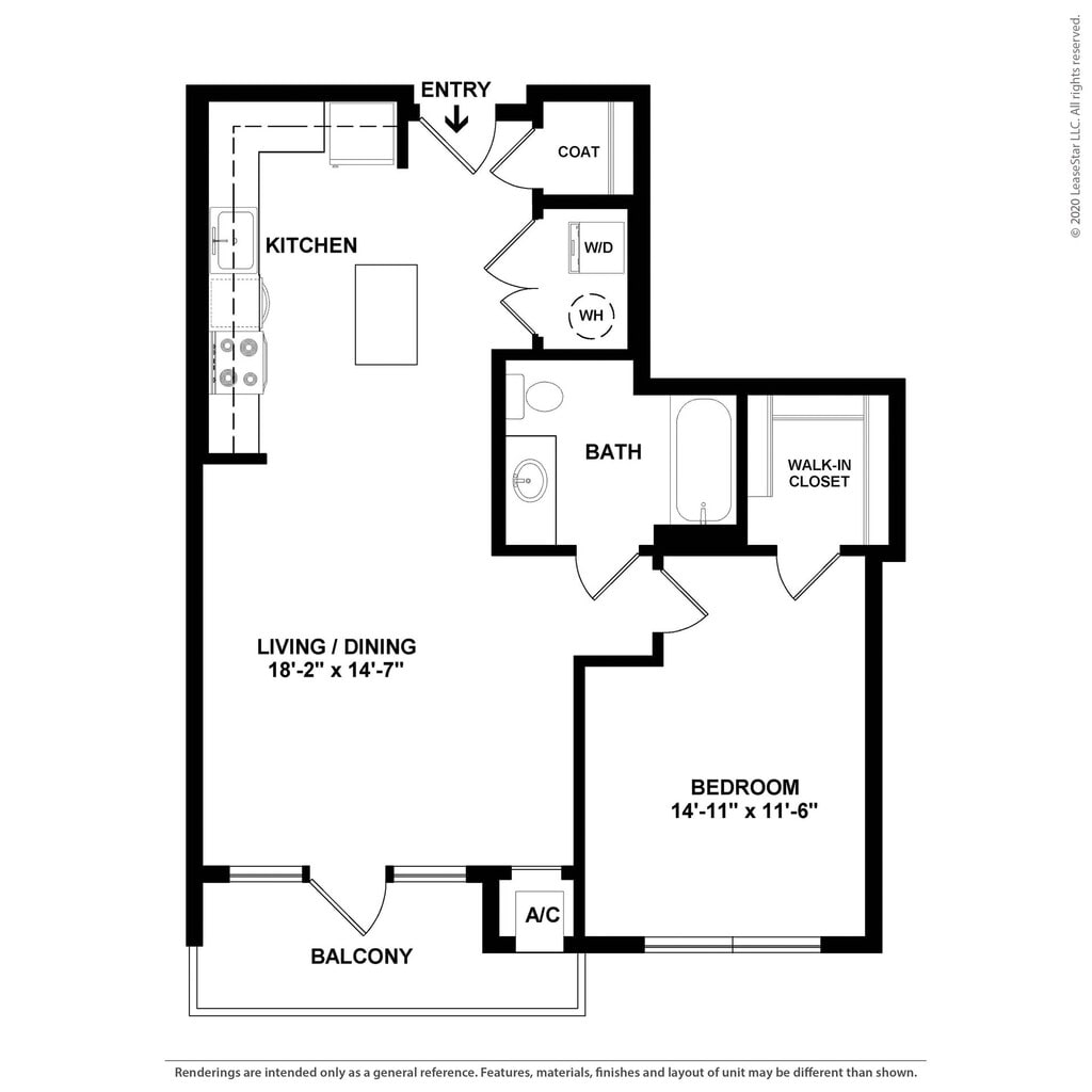 ESC-A11 - Image 1 Floor plans are artist's rendering. All dimensions are approximate. Actual product and specifications may vary in dimension or detail. Not all features are available in every rental home. Please see a representative for details.
