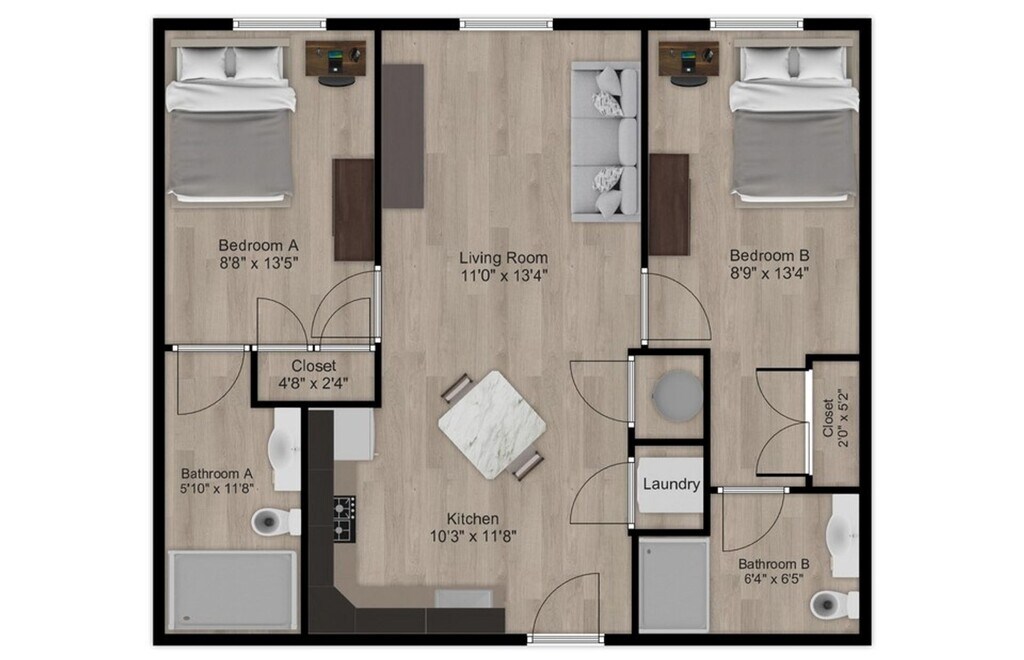 Spring 2026 Semester Lease Opportunity - Floorplan 11 ![]()