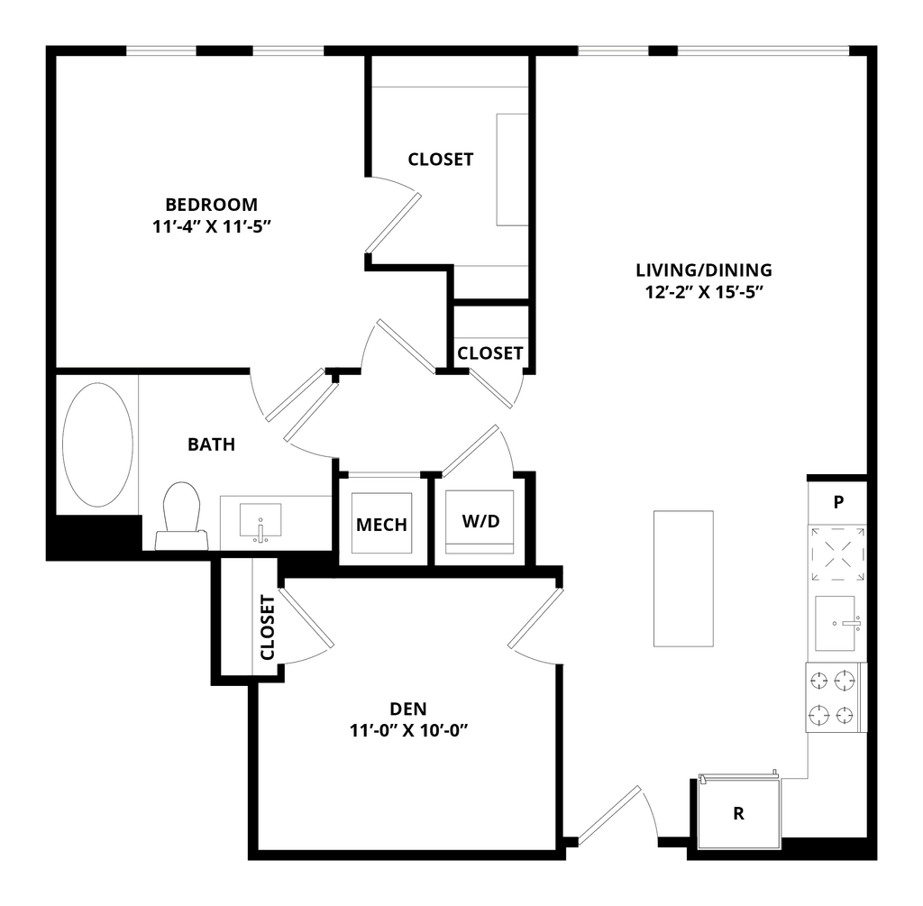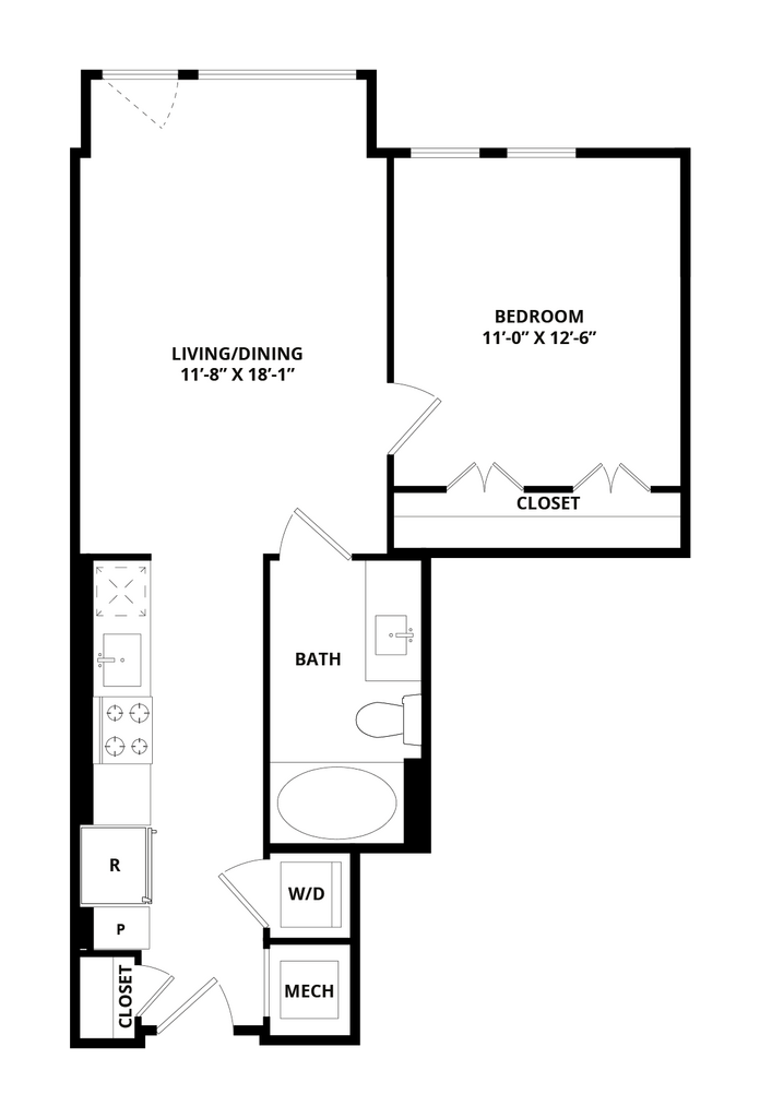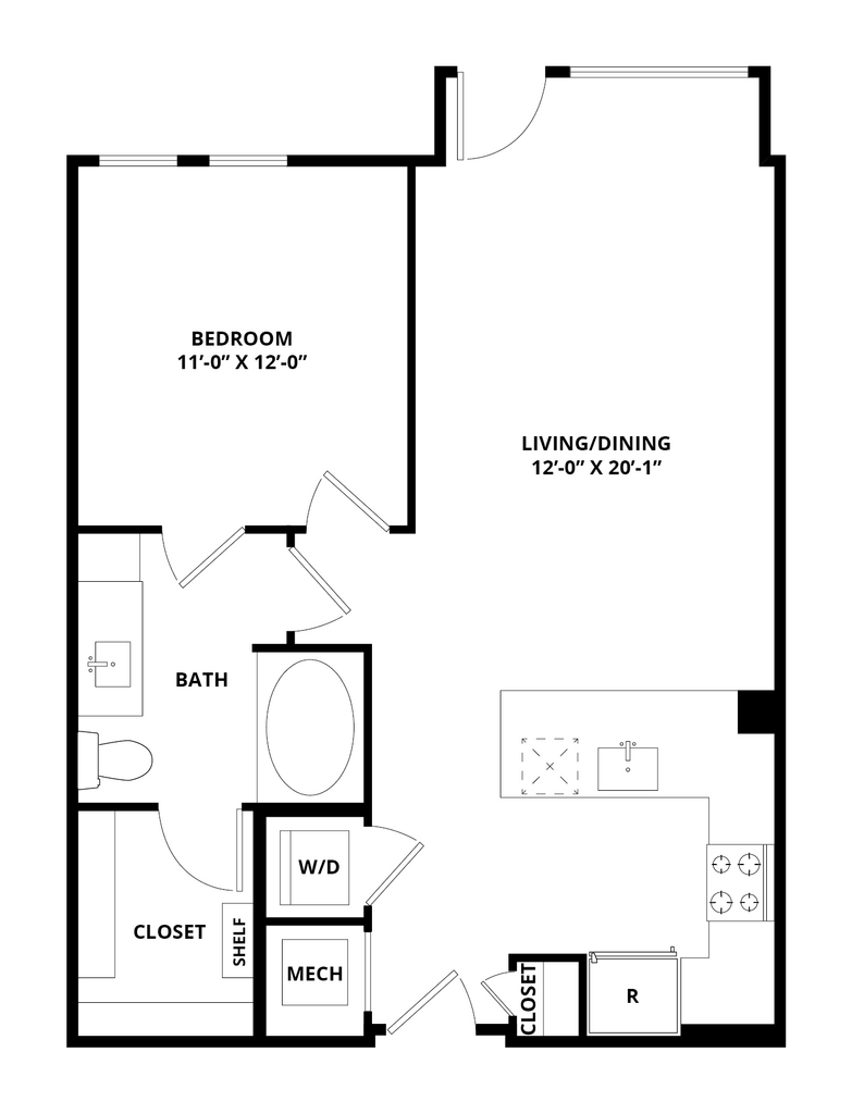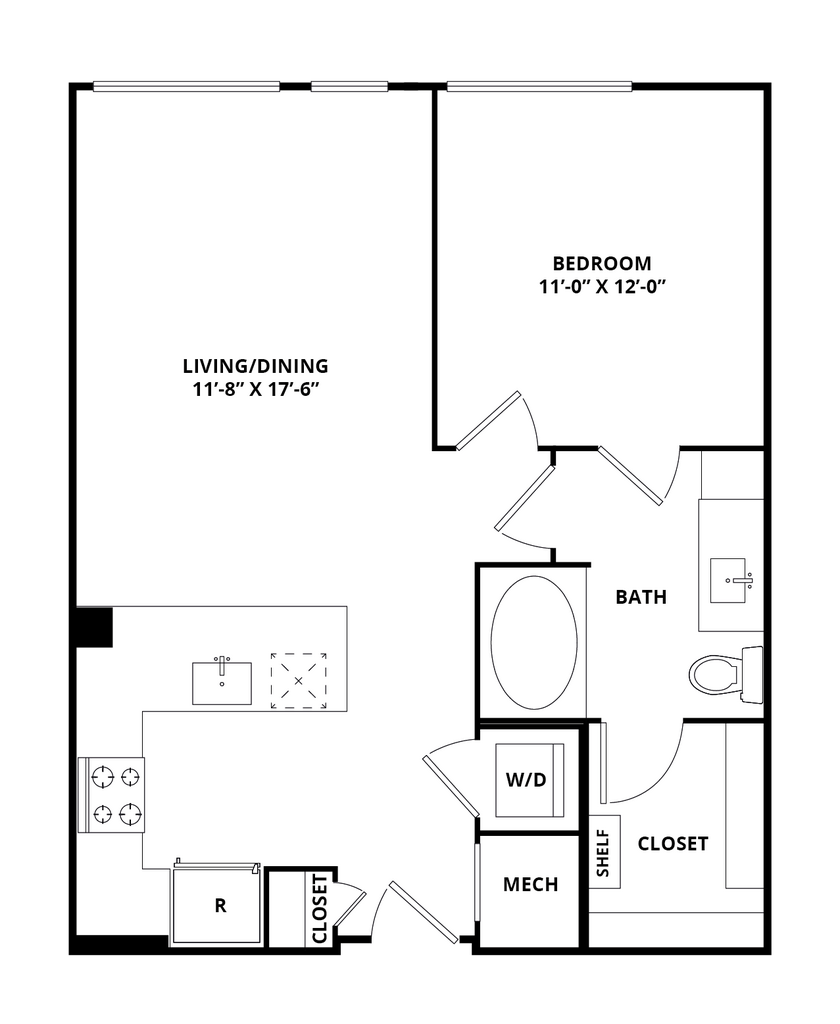 Studio-Fitzgerald - Floorplan 1 1 Bedroom